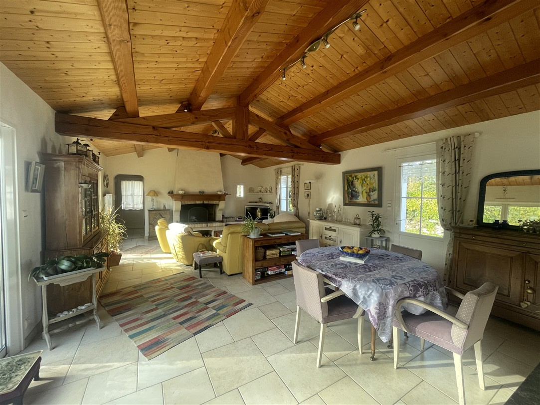 RDC : Entrée, salon séjour avec cheminée, cuisine ouverte aménagée, cellier, bureau, wc avec lave mains, suite parentale (chambre, salle d'eau wc, dressing), chambre 2 avec salle d'eau